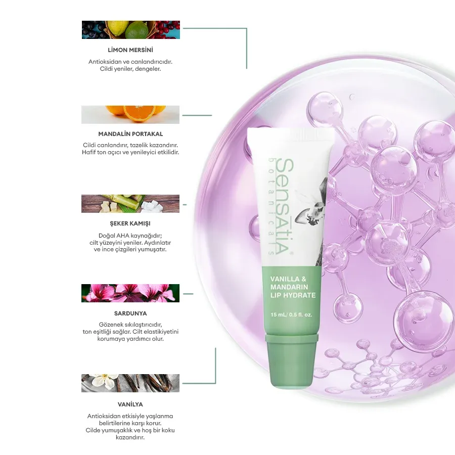 Vanilla & Mandarin Dudak Balmı, dudakları nemlendirir, besler ve onarır. Bu "dolgunlaştırıcı dudak balmı", dudaklarınızı daha dolgun ve sağlıklı bir görünüme kavuşturur.Cilt Bakımındaki Yeri